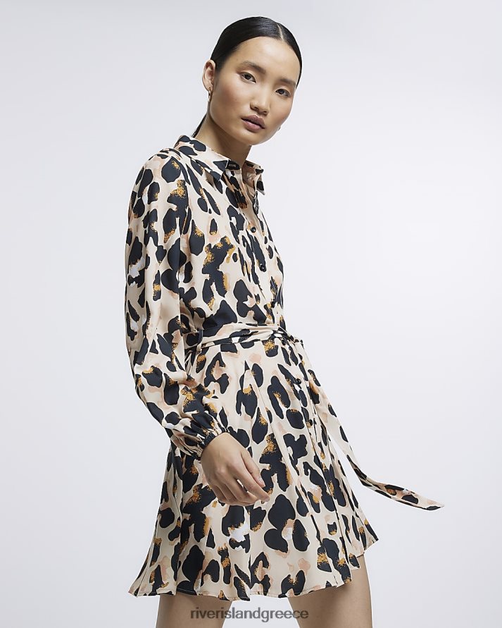 River Island ενδύματα μπεζ γυναίκες Μίνι πουκάμισο φόρεμα με λεοπάρ B6N8X1773