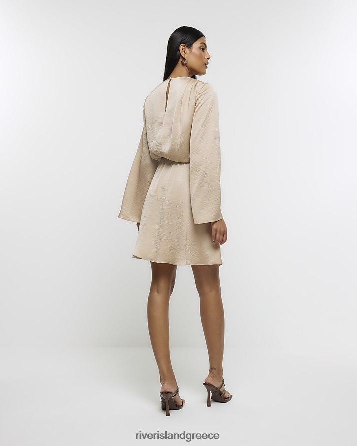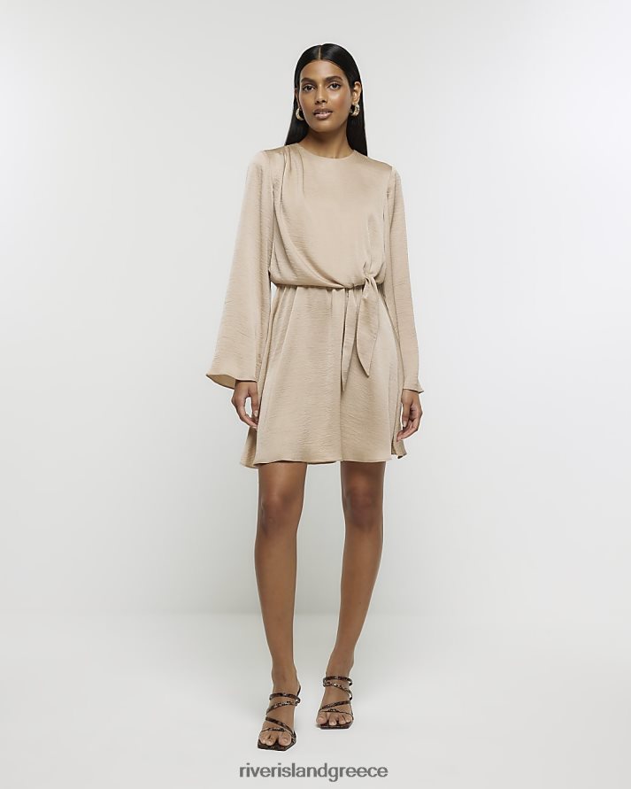 River Island ενδύματα μπεζ γυναίκες Μίνι φόρεμα μπροστινό κόμπο B6N8X834