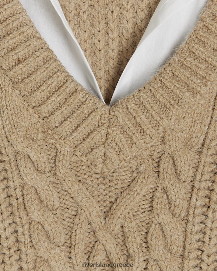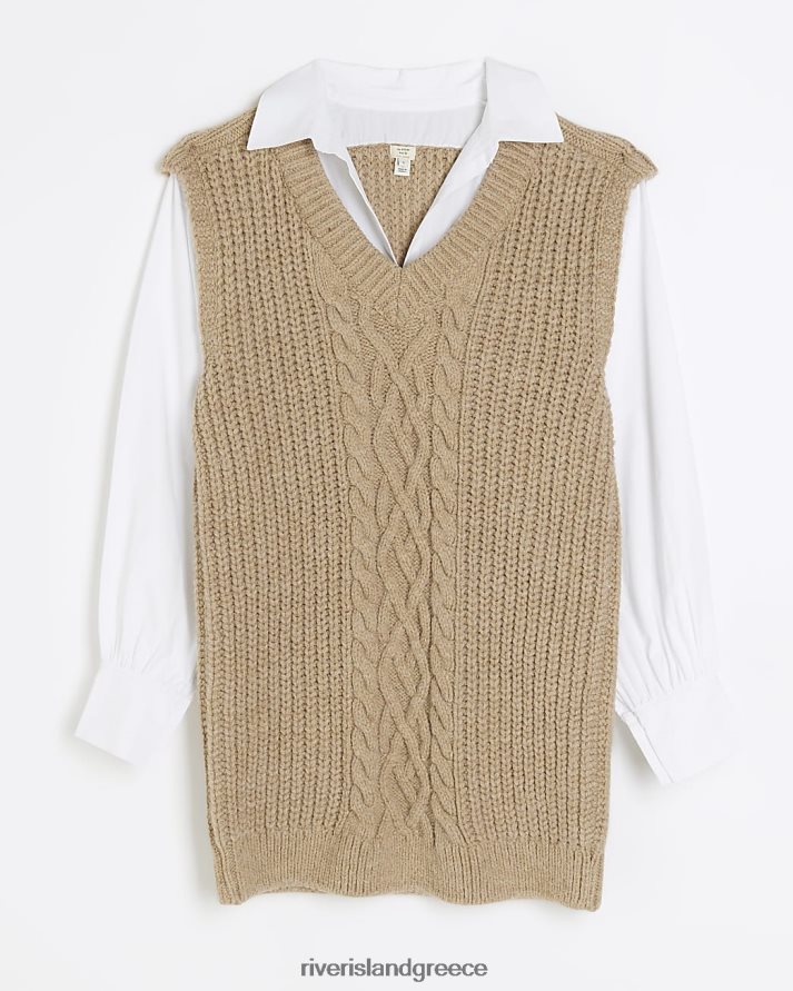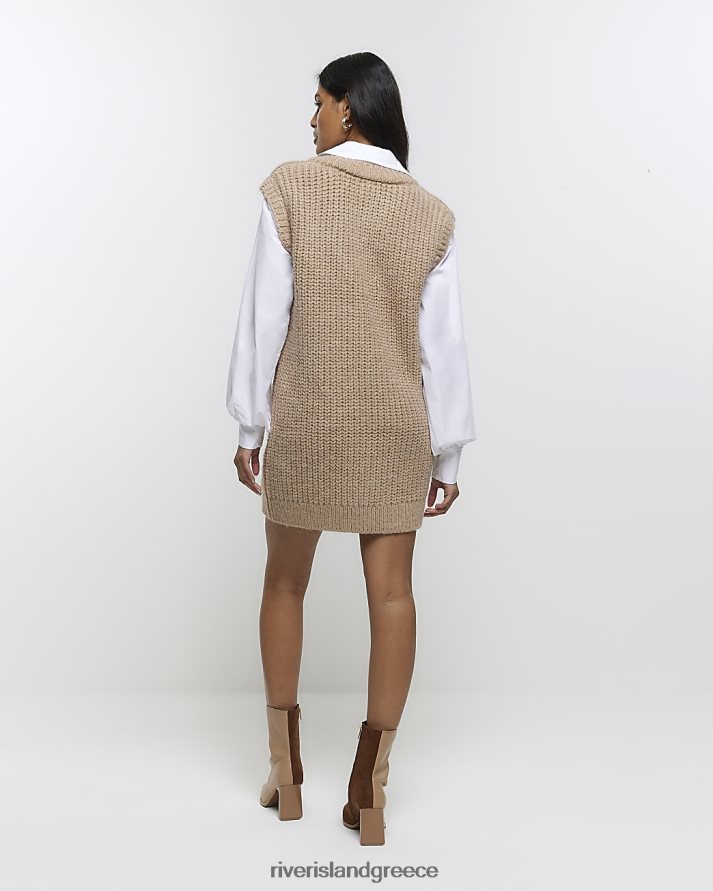 River Island ενδύματα μπεζ γυναίκες Μίνι φόρεμα υβριδικό πλεκτό καλώδιο B6N8X50