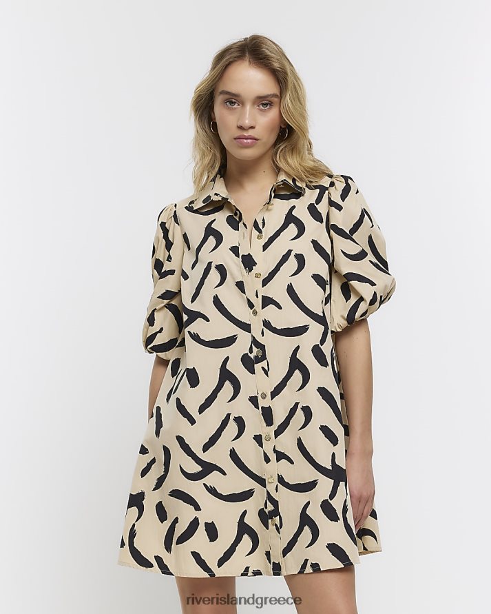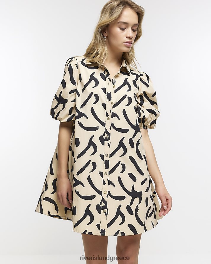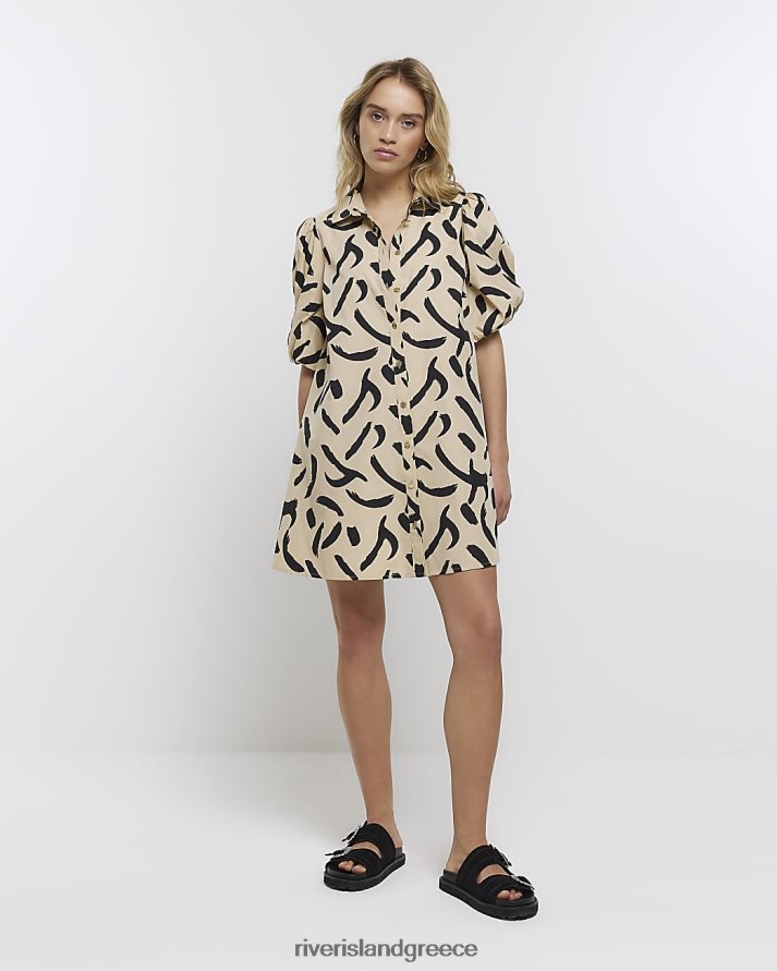 River Island ενδύματα μπεζ γυναίκες Ποπλίνα κοντομάνικο πουκάμισο μίνι φόρεμα B6N8X1718