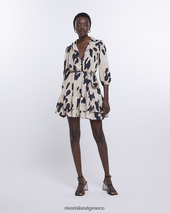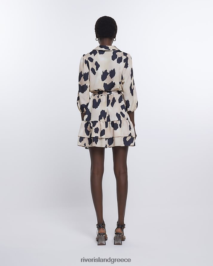 River Island ενδύματα μπεζ γυναίκες Σατέν μίνι φόρεμα πουκάμισο με animal print B6N8X4909
