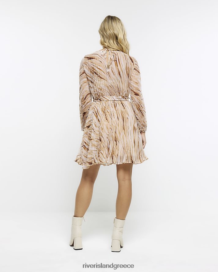 River Island ενδύματα μπεζ γυναίκες plisse abstract swing min idress B6N8X4259