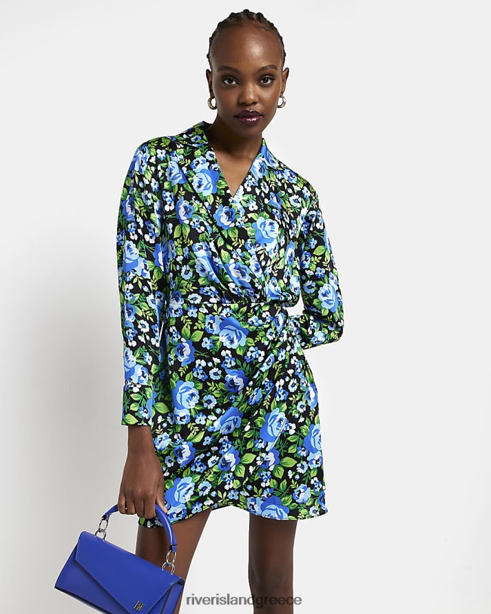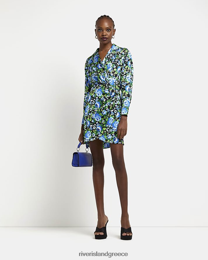 River Island ενδύματα μπλε γυναίκες Μίνι μπλέιζερ φλοράλ σατέν φόρεμα B6N8X1964