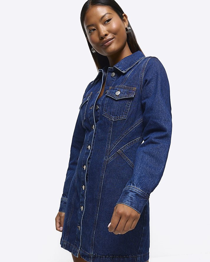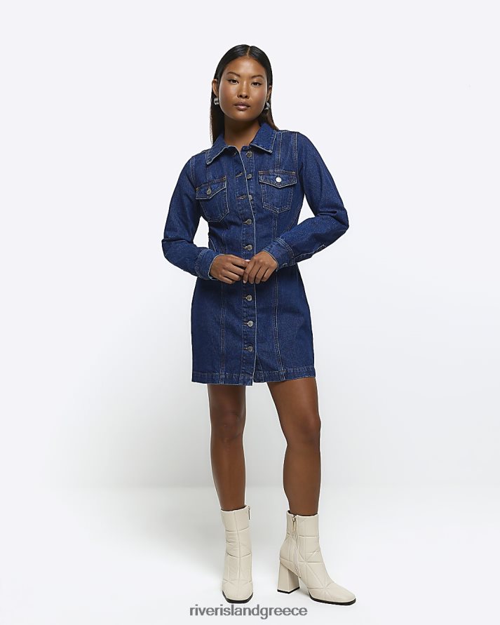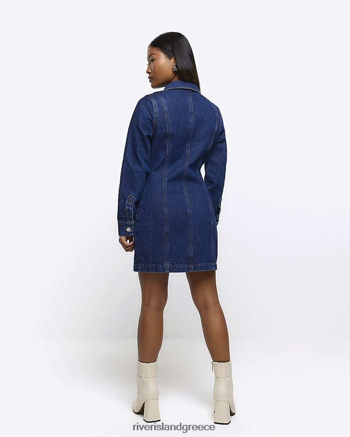 River Island ενδύματα μπλε γυναίκες Μίνι τζιν φόρεμα με λεπτές ραφές B6N8X5267