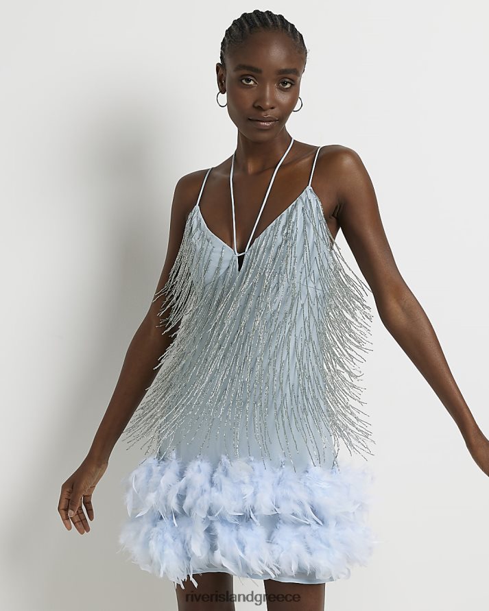 River Island ενδύματα μπλε γυναίκες Μίνι φόρεμα με πούπουλα B6N8X4959