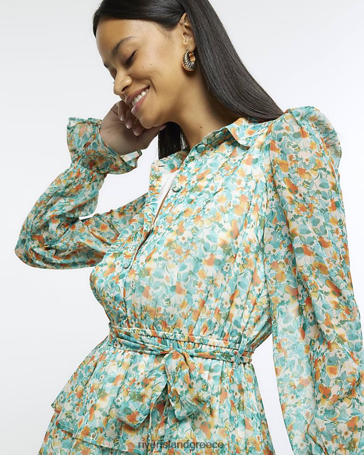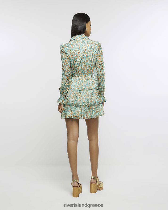 River Island ενδύματα μπλε γυναίκες Μίνι φόρεμα πουκάμισο με φλοράλ επίπεδα B6N8X4706