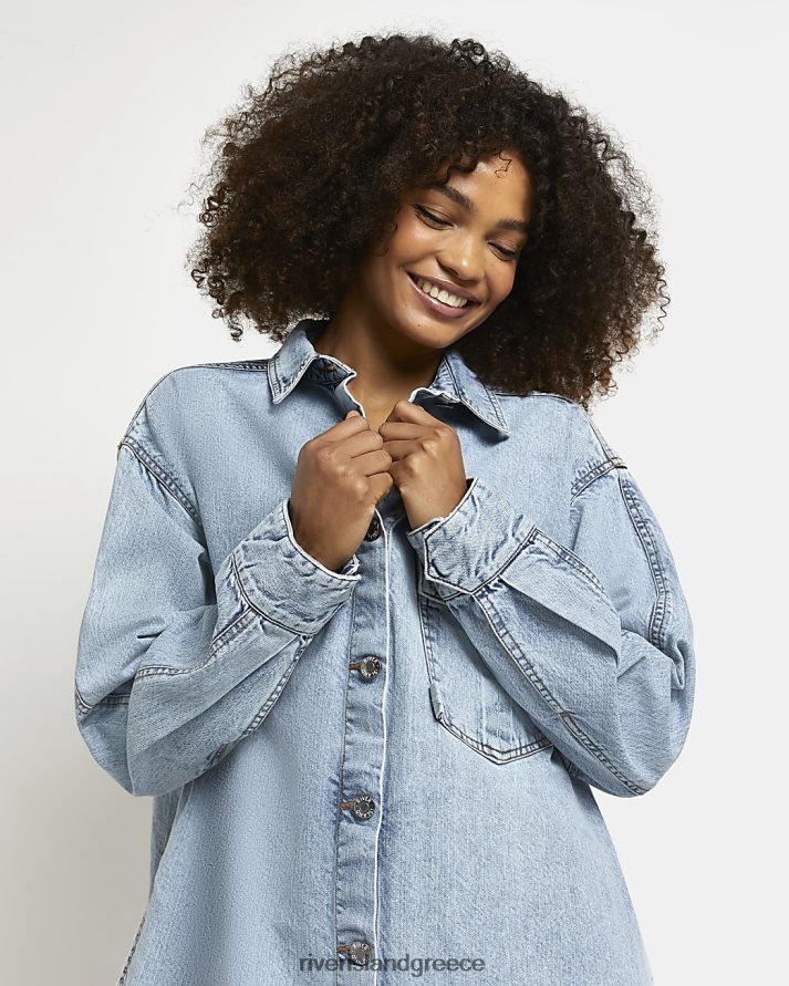 River Island ενδύματα μπλε γυναίκες τζιν μίνι πουκάμισο φόρεμα B6N8X4798