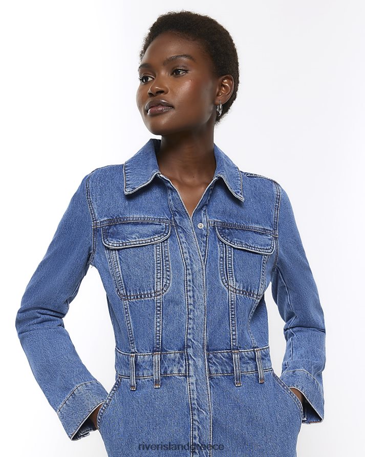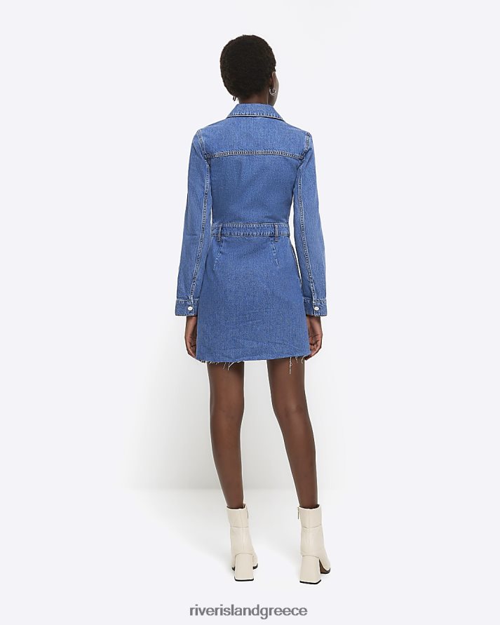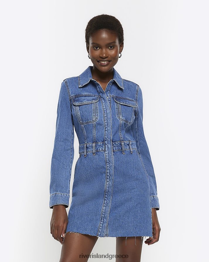 River Island ενδύματα μπλε γυναίκες τζιν μακρυμάνικο πουκάμισο μίνι φόρεμα B6N8X4379