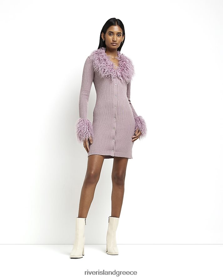 River Island ενδύματα μωβ γυναίκες Μίνι φόρεμα ζακέτα από ψεύτικη γούνα bodycon B6N8X4962