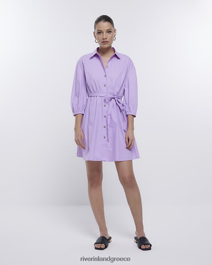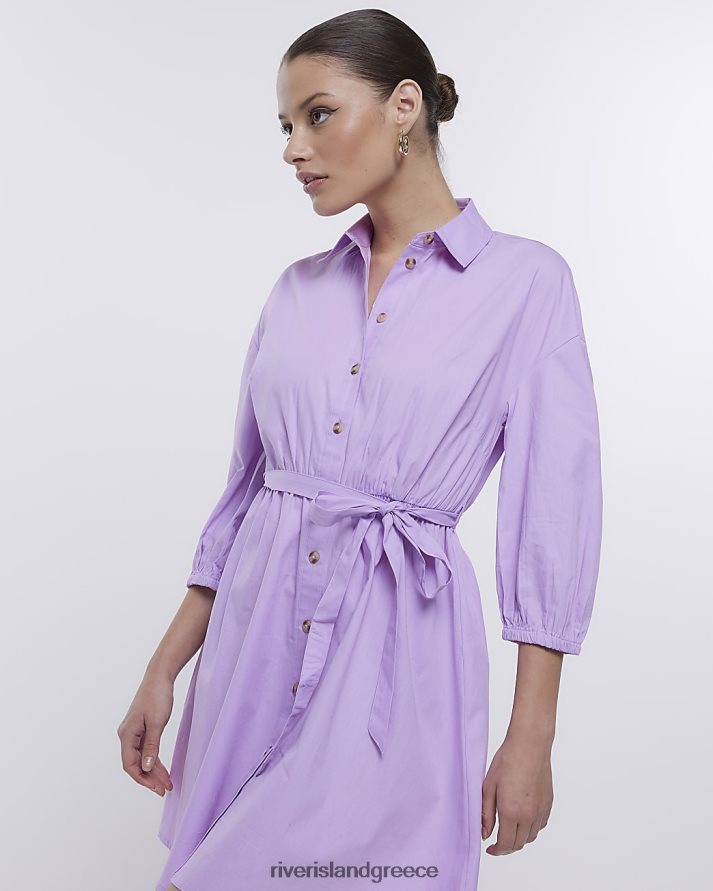 River Island ενδύματα μωβ γυναίκες Μίνι φόρεμα πουκάμισο με μακριά μανίκια B6N8X1565