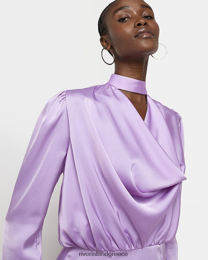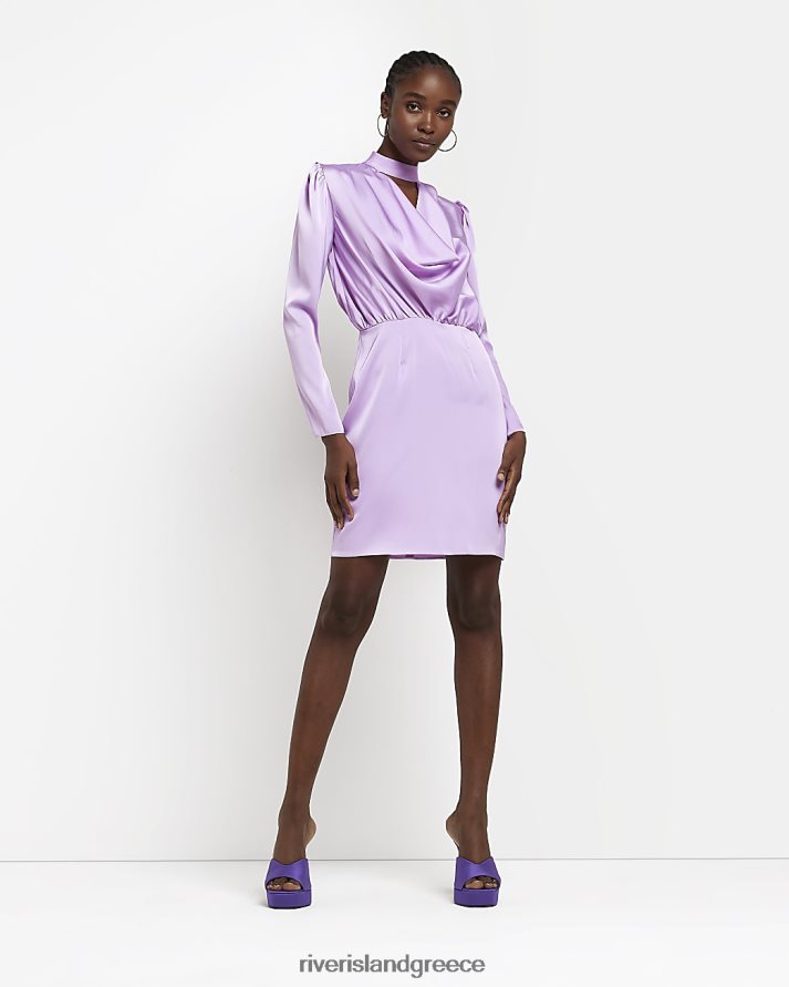 River Island ενδύματα μωβ γυναίκες Σατέν φόρεμα με λαιμόκοψη B6N8X1935