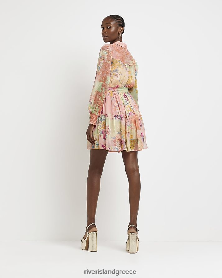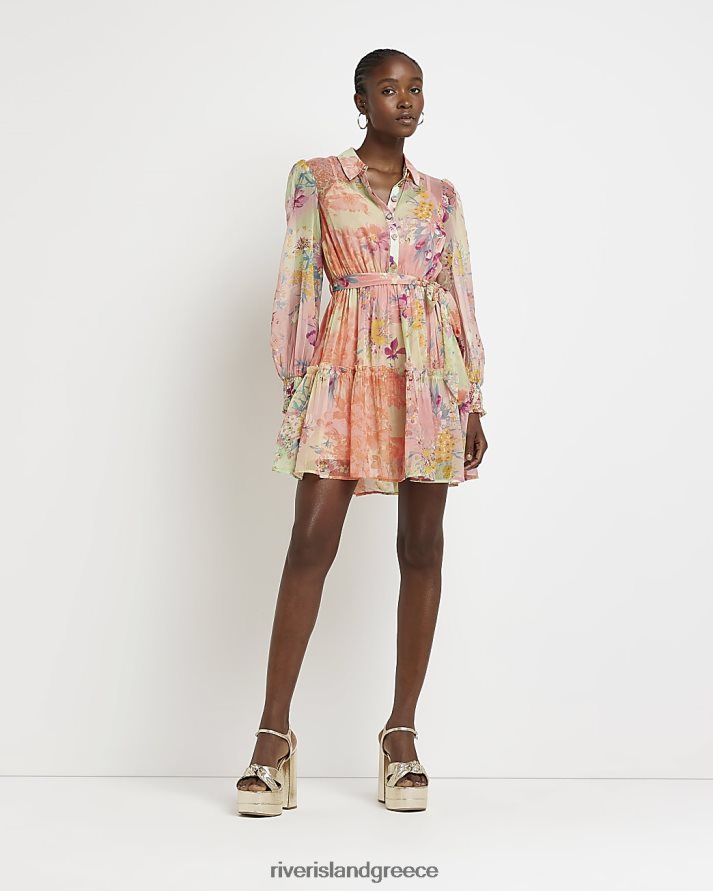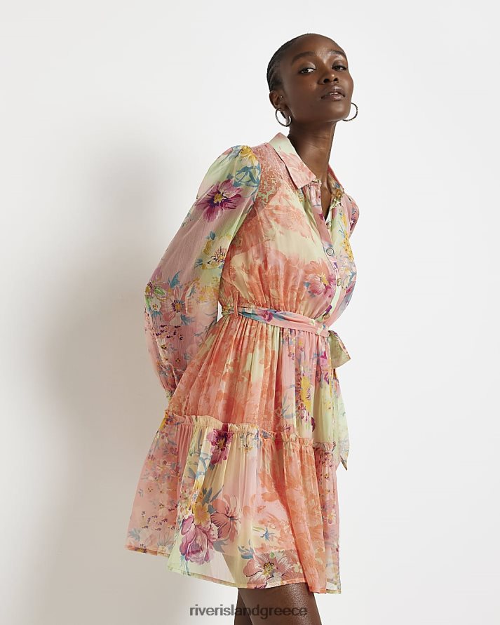 River Island ενδύματα πορτοκάλι γυναίκες Μίνι πουκάμισο με λουλουδάτο μακρυμάνικο B6N8X1882
