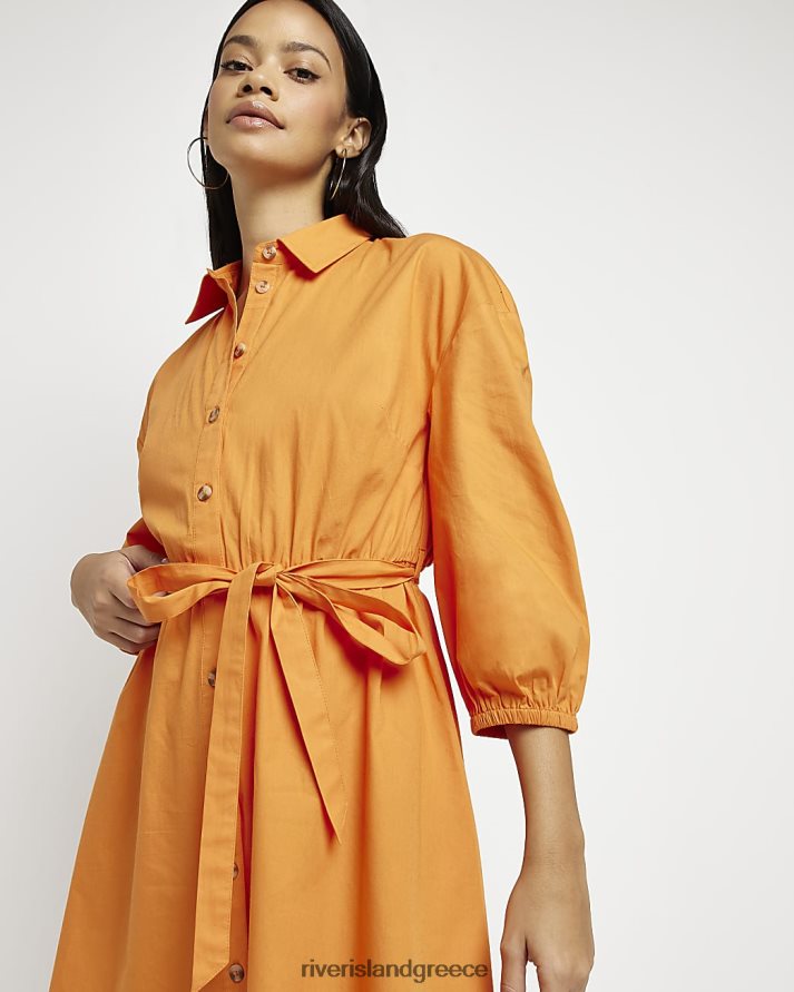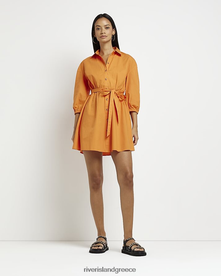 River Island ενδύματα πορτοκάλι γυναίκες Μίνι φόρεμα πουκάμισο με μακριά μανίκια B6N8X1564