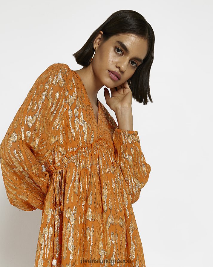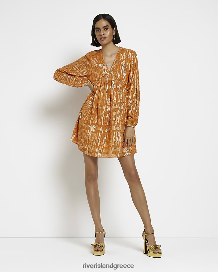River Island ενδύματα πορτοκάλι γυναίκες shimmer smock μίνι φόρεμα B6N8X1681