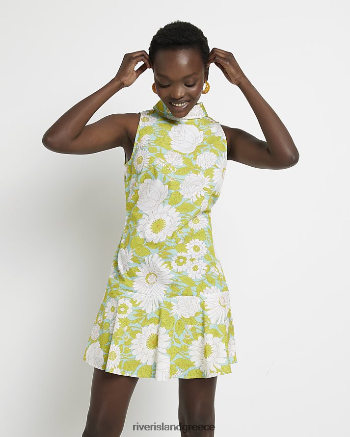 River Island ενδύματα πράσινος γυναίκες λουλουδάτο μίνι φόρεμα με ψηλό λαιμό B6N8X1548