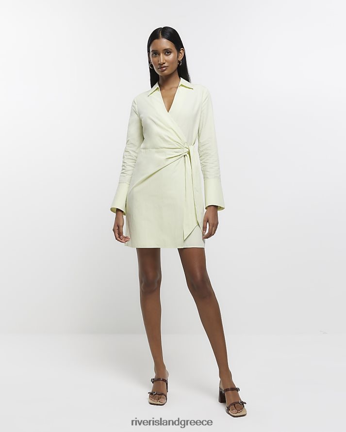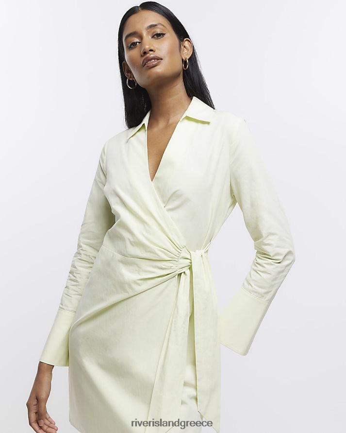 River Island ενδύματα πράσινος γυναίκες Μίνι φόρεμα πουκάμισου με δέσιμο στη μέση B6N8X4518