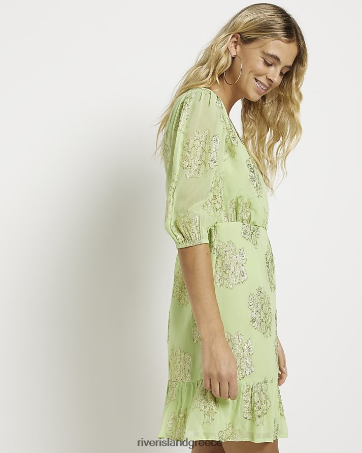 River Island ενδύματα πράσινος γυναίκες στάμπα μεταλλικό μίνι φόρεμα B6N8X1798