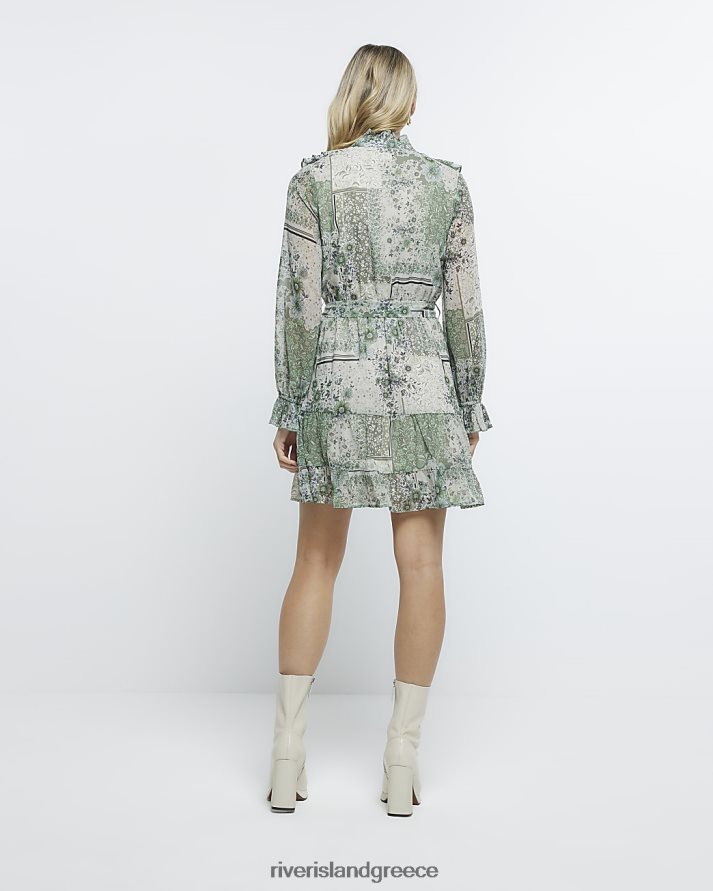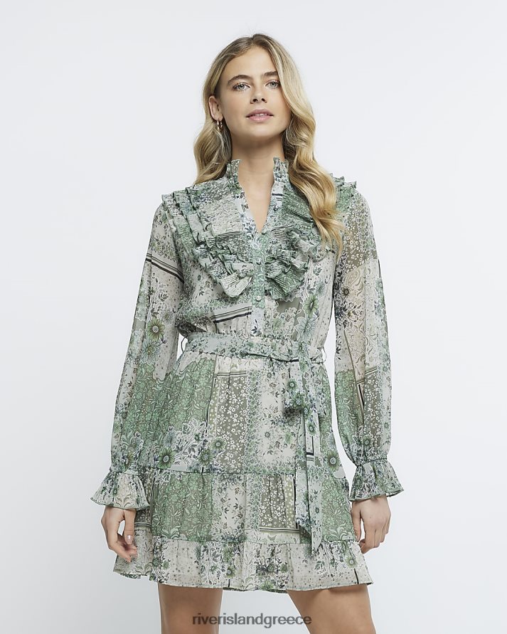 River Island ενδύματα πράσινος γυναίκες floral frill μίνι πουκάμισο φόρεμα B6N8X1857