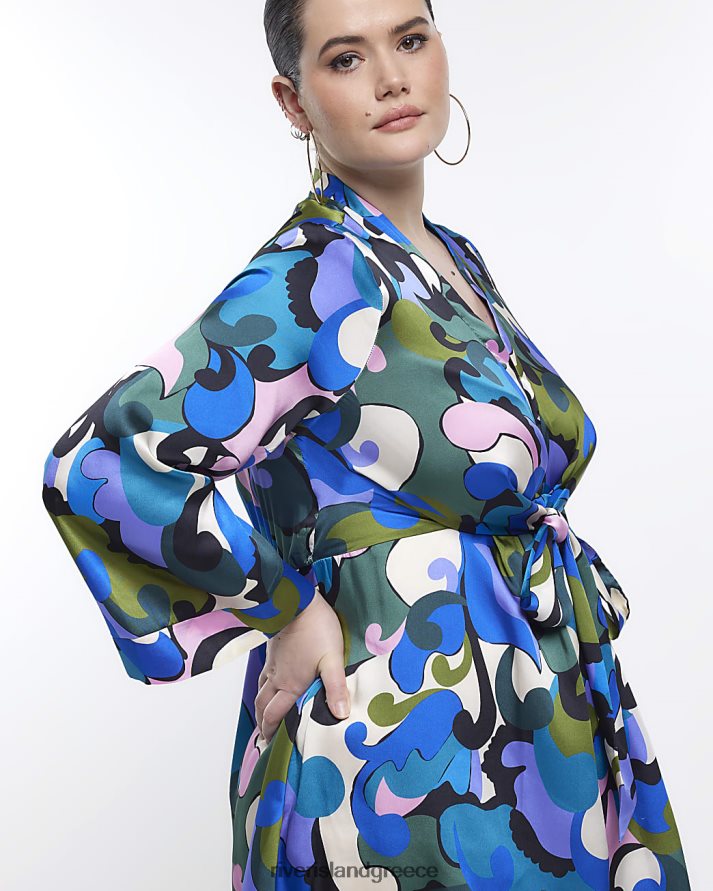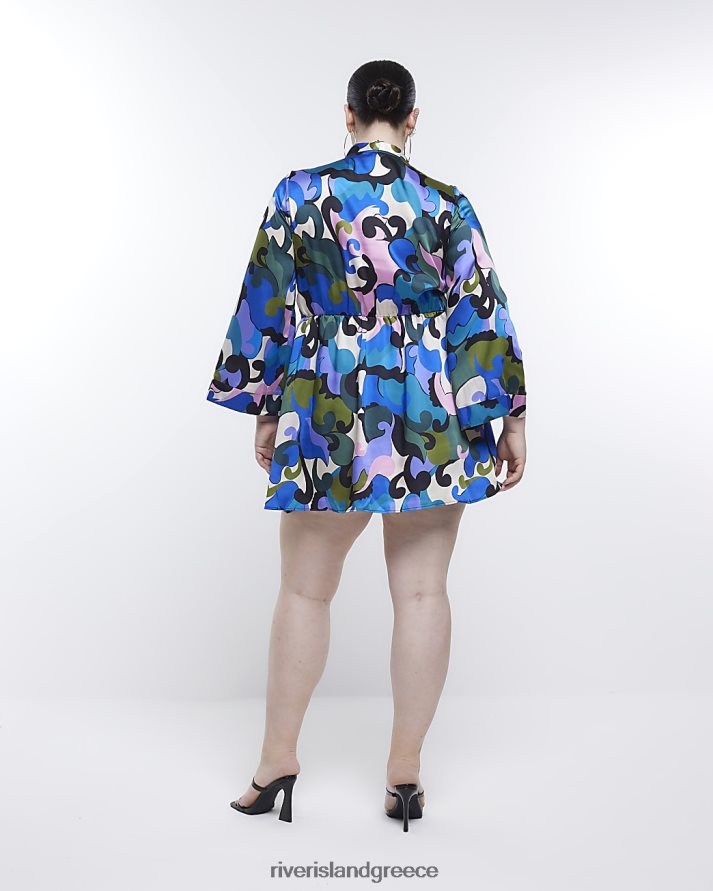 River Island ενδύματα πράσινος γυναίκες plus σατέν μακρυμάνικο μίνι φόρεμα B6N8X5158