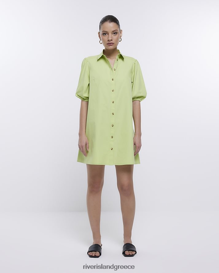River Island ενδύματα πράσινο ασβέστη γυναίκες κοντομάνικο μίνι πουκάμισο φόρεμα B6N8X437