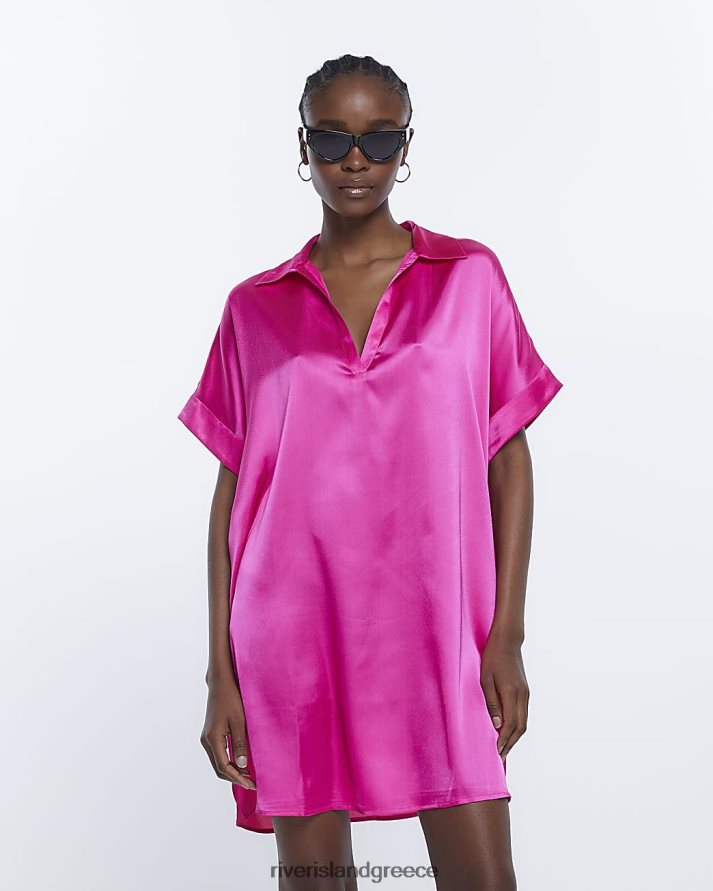 River Island ενδύματα ροζ γυναίκες κοντομάνικο μίνι πουκάμισο φόρεμα B6N8X1504