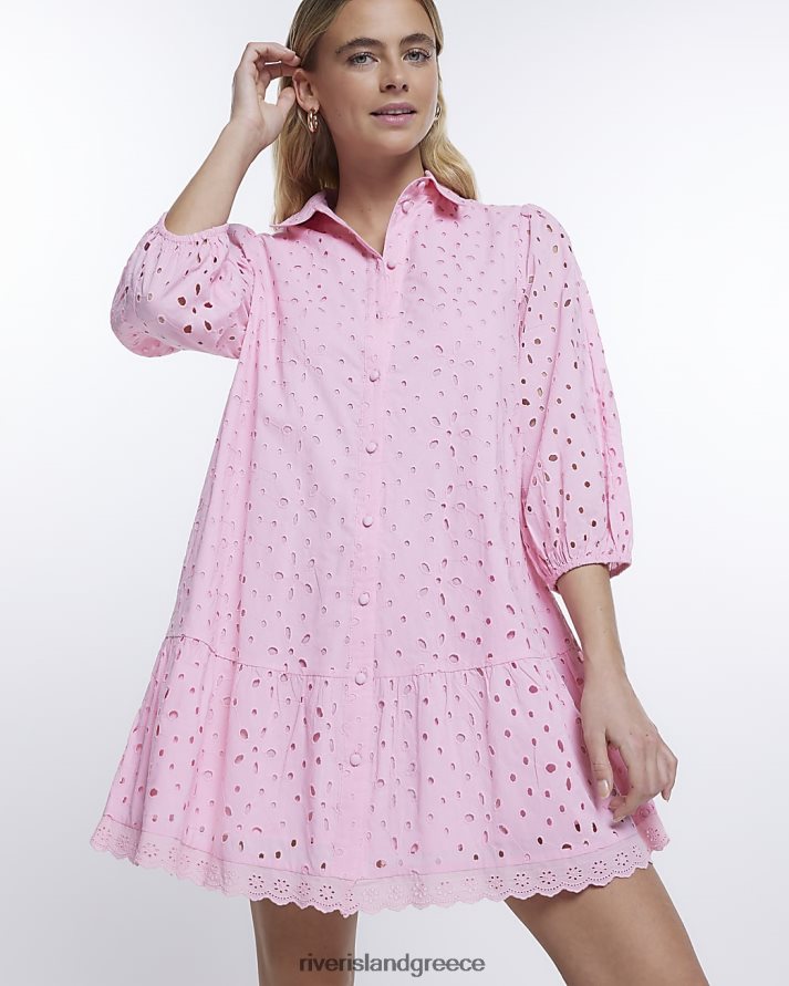River Island ενδύματα ροζ γυναίκες Μίνι μακρυμάνικο πουκάμισο broderie B6N8X1757