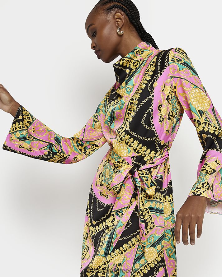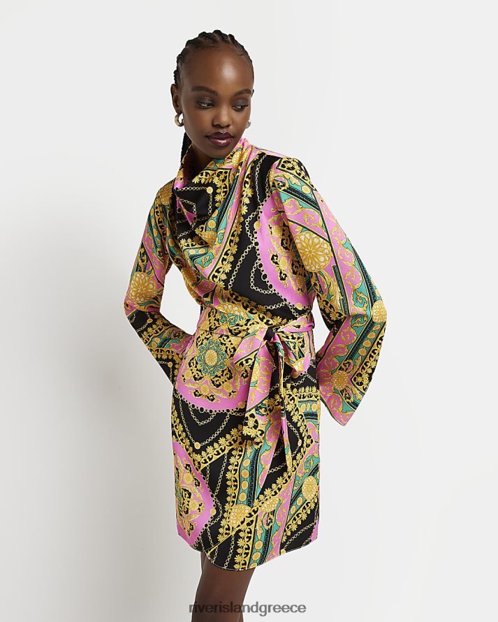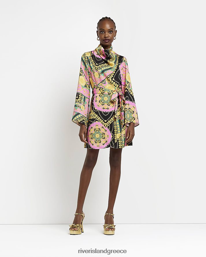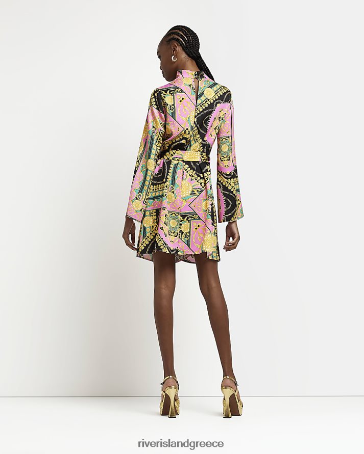 River Island ενδύματα ροζ γυναίκες Μίνι φόρεμα με στάμπα με ψηλό λαιμό B6N8X4956