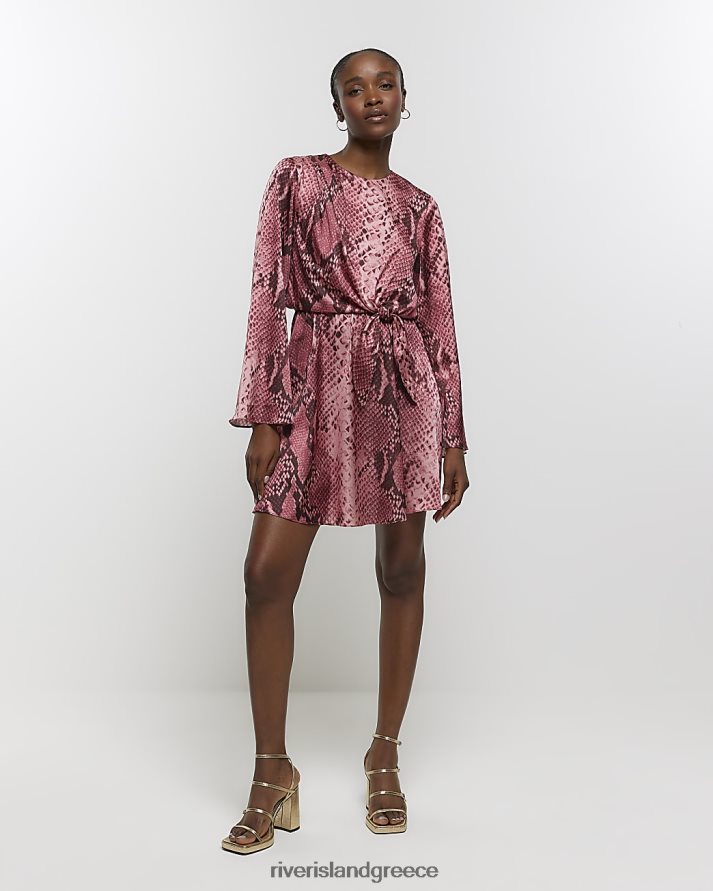 River Island ενδύματα ροζ γυναίκες Μίνι φόρεμα μπροστινό κόμπο B6N8X837