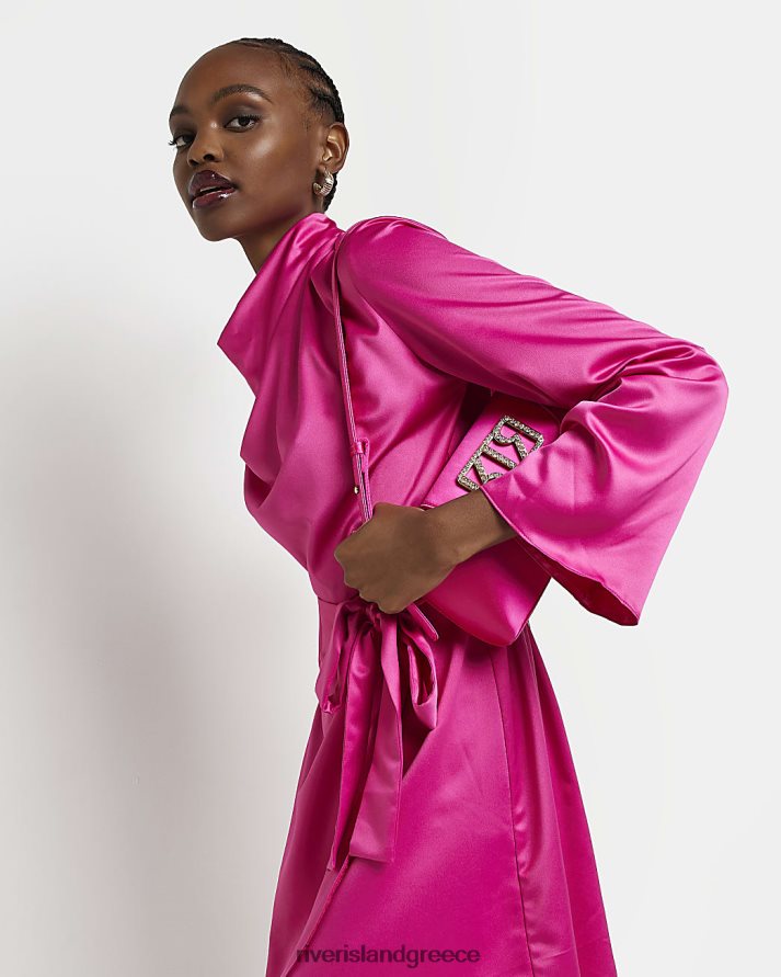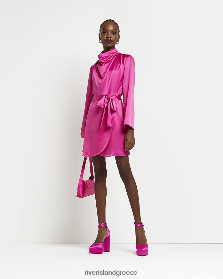 River Island ενδύματα ροζ γυναίκες Σατέν μίνι φόρεμα με ψηλό λαιμό B6N8X1366