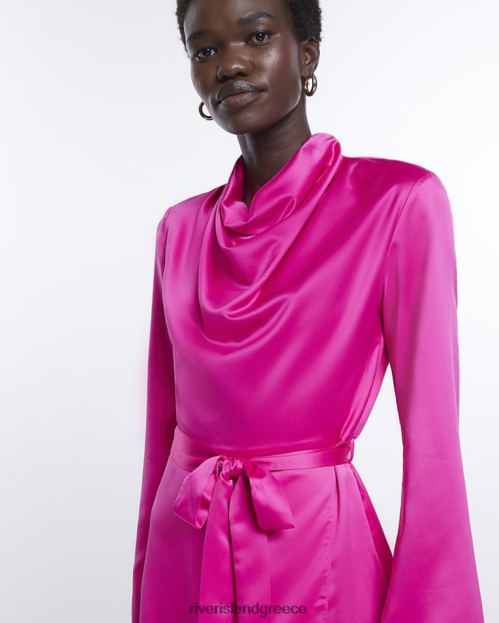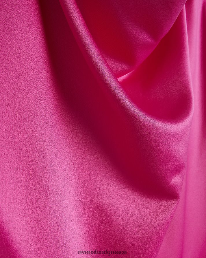 River Island ενδύματα ροζ γυναίκες ψηλό σατέν μίνι φόρεμα skater με ψηλό λαιμό B6N8X4900