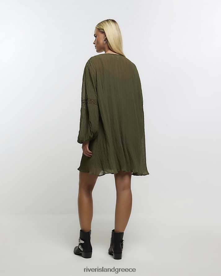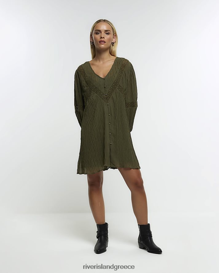 River Island ενδύματα χακί γυναίκες λεπτομέρεια δαντέλα smock μίνι φόρεμα B6N8X5275