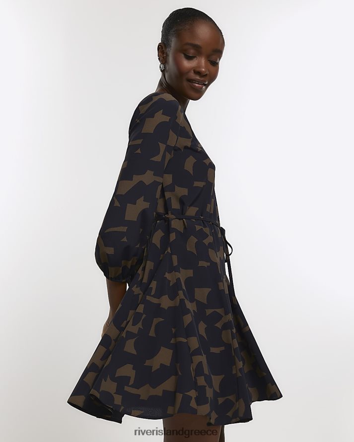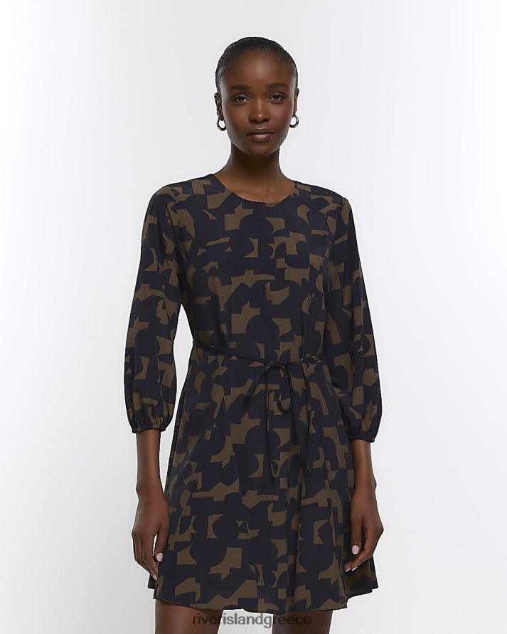 River Island ενδύματα χακί γυναίκες μίνι φόρεμα με γεωμετρικό δέσιμο στη μέση B6N8X1095