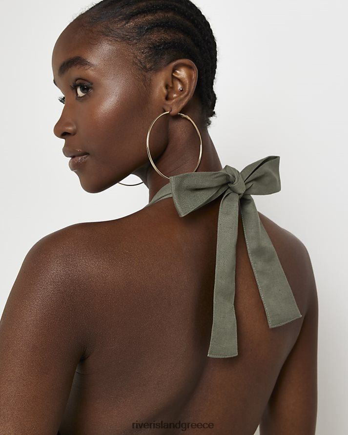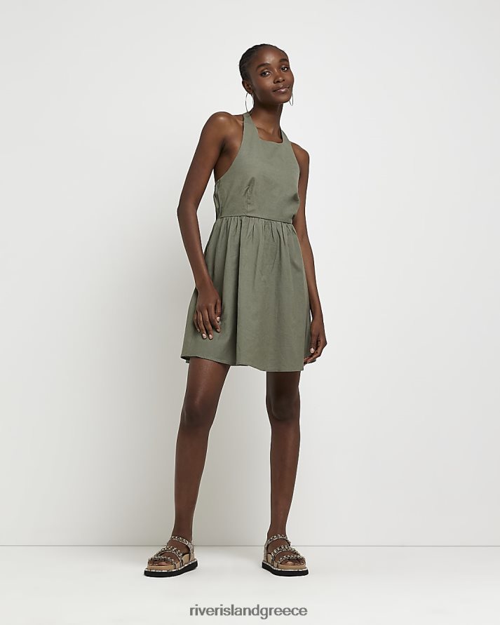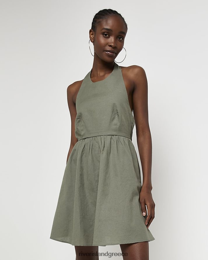 River Island ενδύματα χακί γυναίκες Μίνι φόρεμα halter skater από λινό μείγμα B6N8X1491
