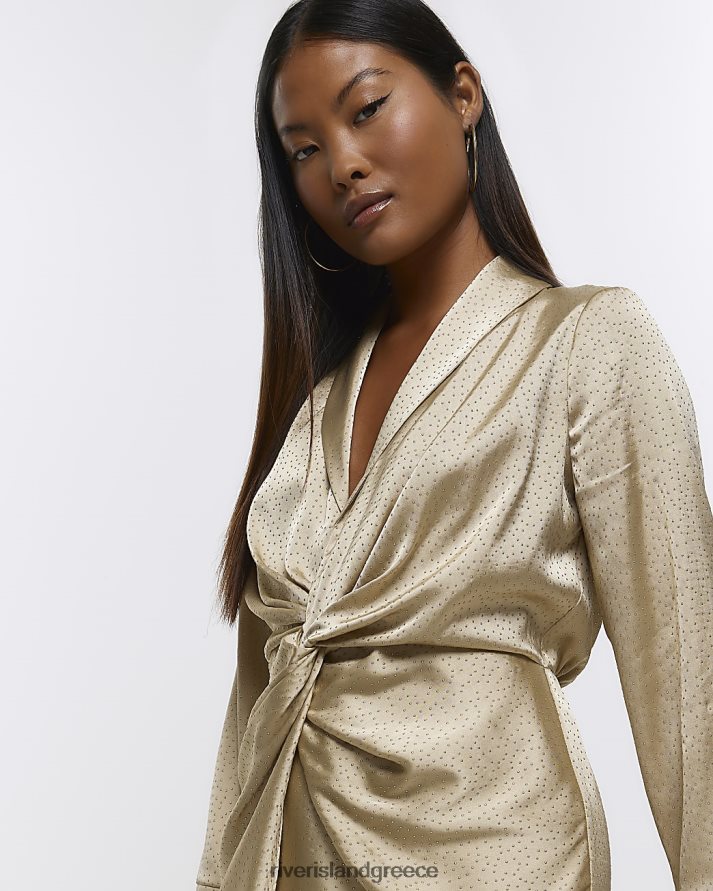 River Island ενδύματα χρυσός γυναίκες Μίνι φόρεμα κορμάκι με κόμπο μπροστά B6N8X5225