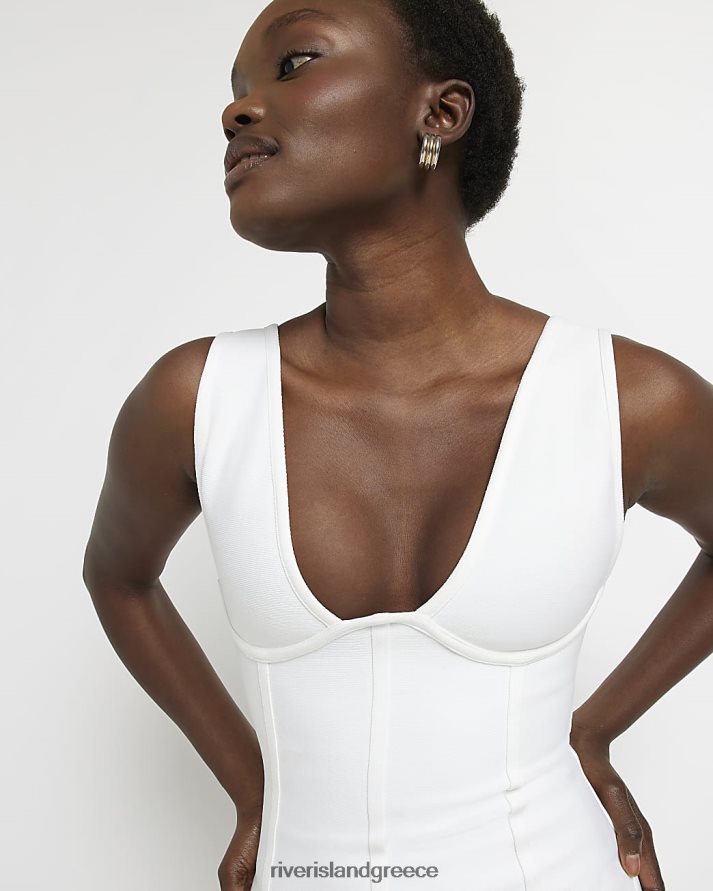River Island ενδύματα άσπρο γυναίκες μίντι φόρεμα αμάνικο bodycon B6N8X2079