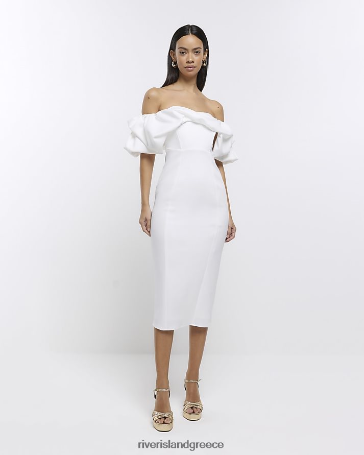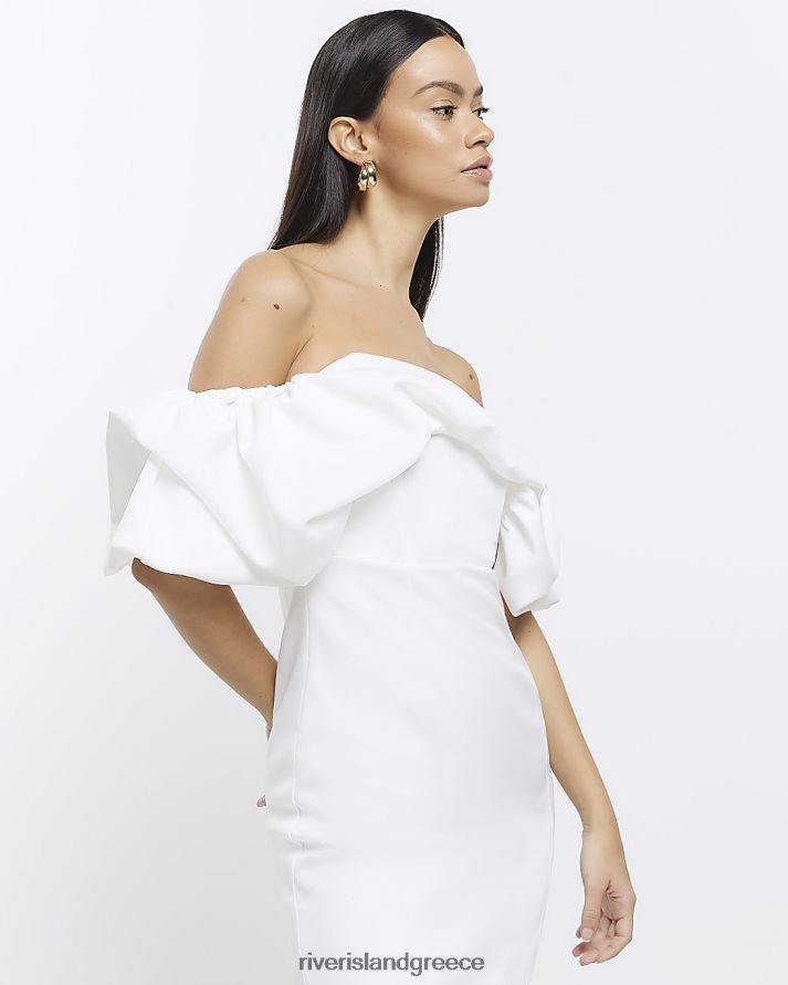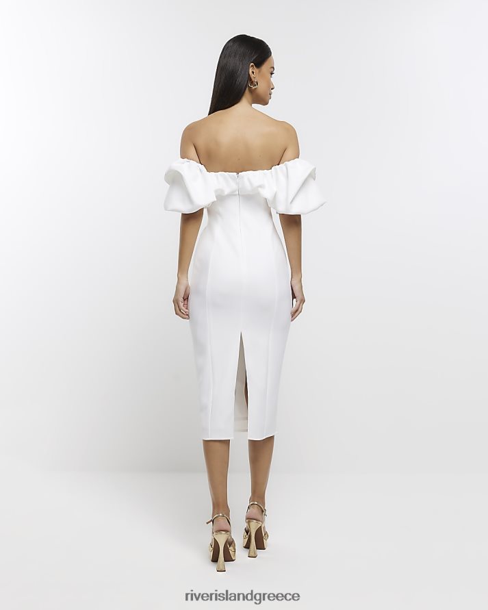 River Island ενδύματα άσπρο γυναίκες μίντι φόρεμα bardot bodycon B6N8X4705