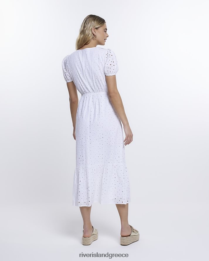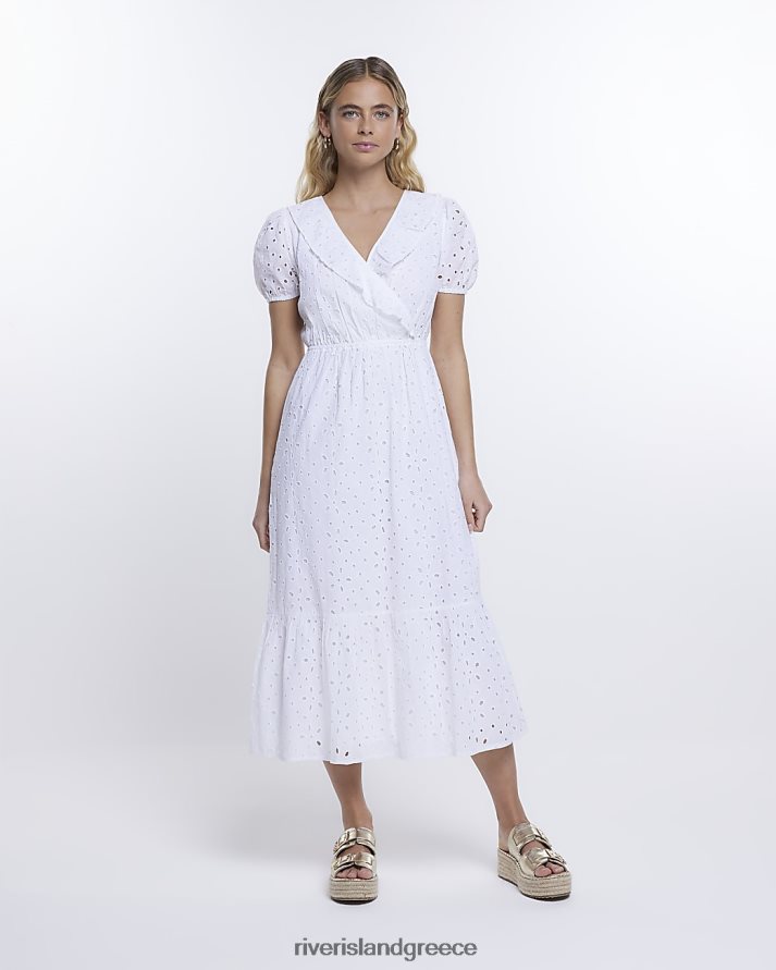 River Island ενδύματα άσπρο γυναίκες μίντι φόρεμα brodeire wrap B6N8X1850