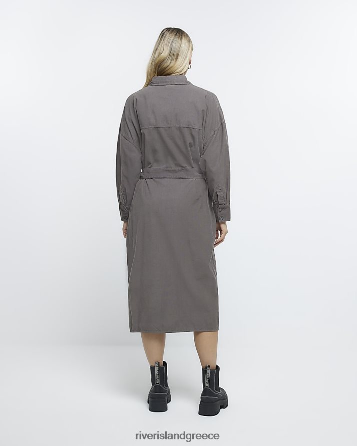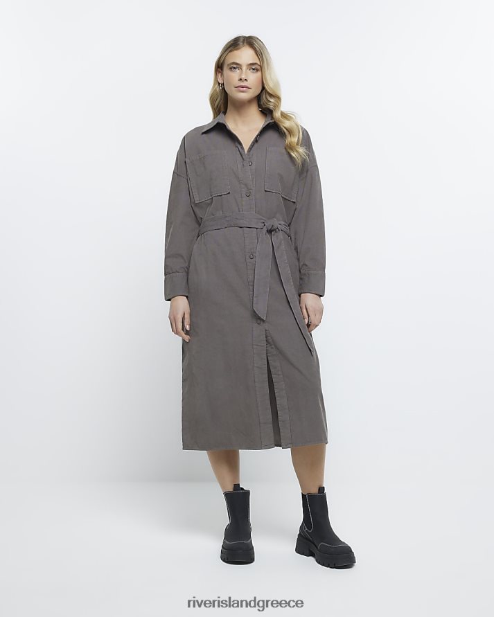 River Island ενδύματα γκρί γυναίκες κοτλέ μακρυμάνικο μίντι πουκάμισο φόρεμα B6N8X4878
