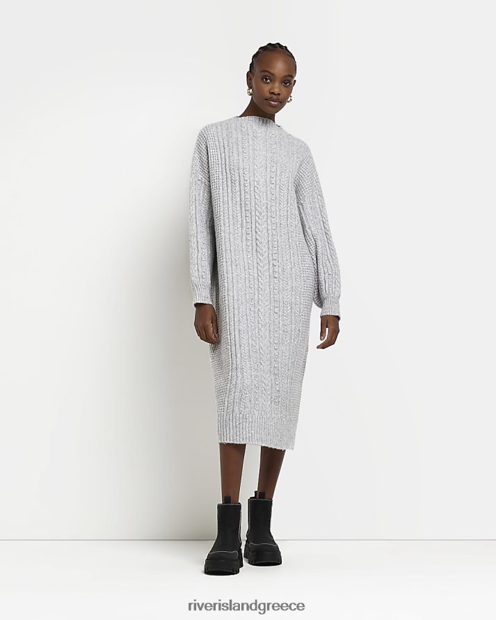 River Island ενδύματα γκρί γυναίκες μίντι φόρεμα πλεκτό καλώδιο B6N8X3737