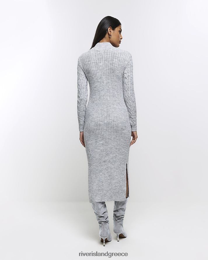 River Island ενδύματα γκρί γυναίκες μίντι φόρεμα πλεκτό καλώδιο B6N8X4129
