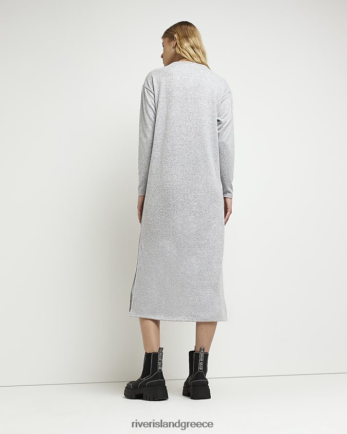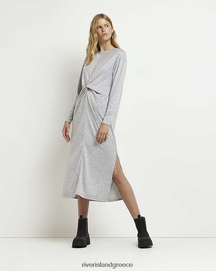 River Island ενδύματα γκρί γυναίκες μακρυμάνικο twist μπροστινό μίντι φόρεμα B6N8X612