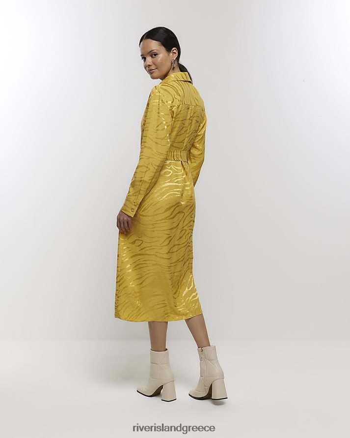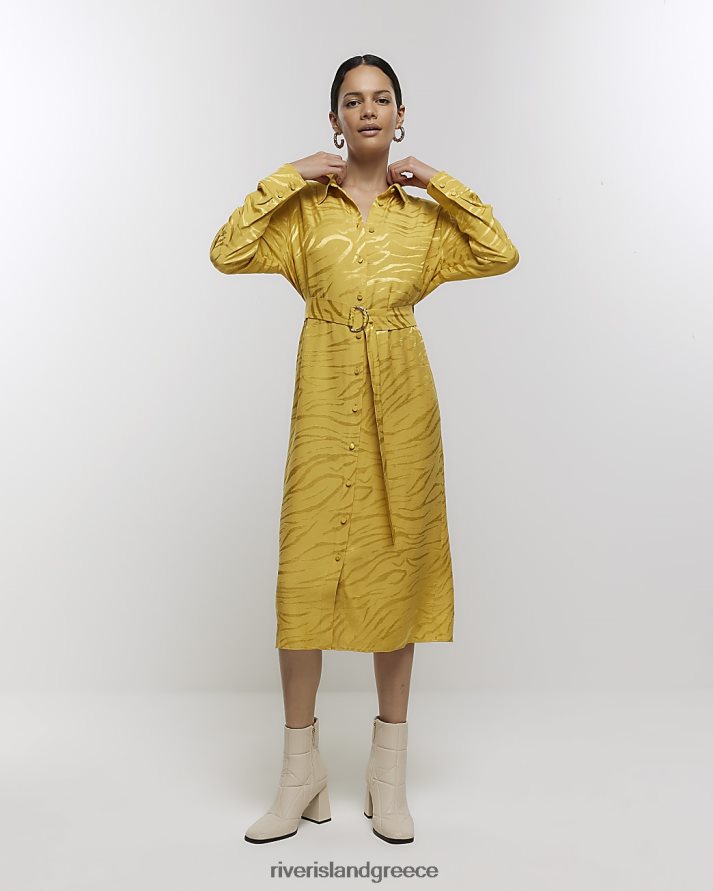 River Island ενδύματα κίτρινος γυναίκες μίντι πουκάμισο φόρεμα με ζώνη B6N8X4164