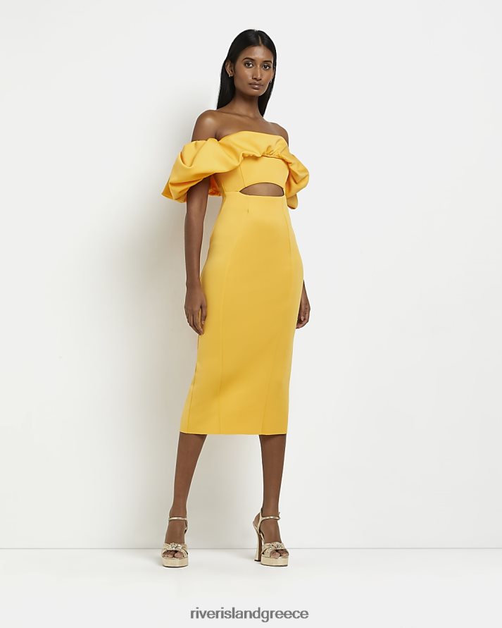 River Island ενδύματα κίτρινος γυναίκες μίντι φόρεμα bardot bodycon B6N8X453