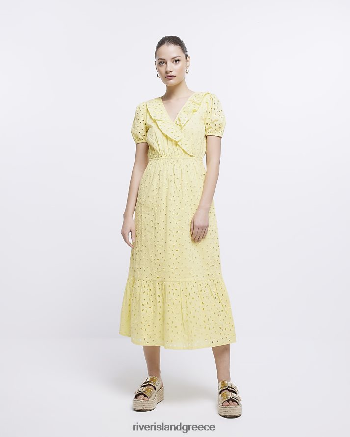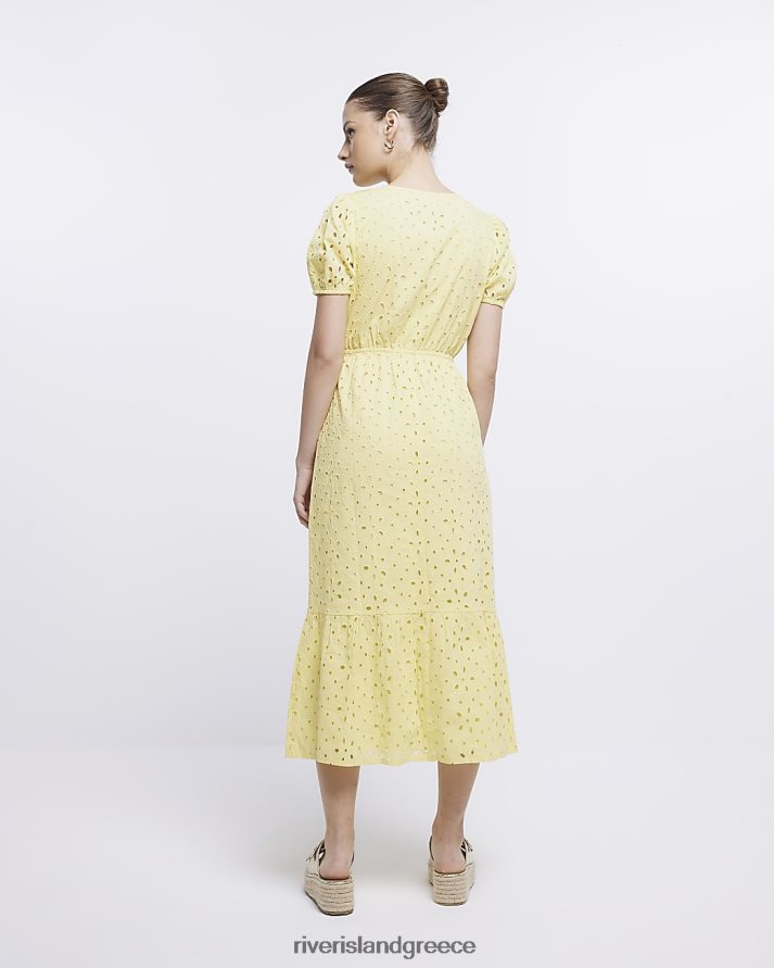 River Island ενδύματα κίτρινος γυναίκες μίντι φόρεμα broderie wrap B6N8X1847