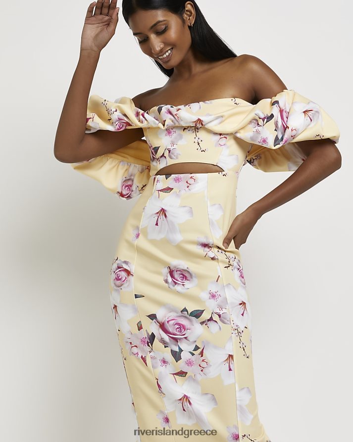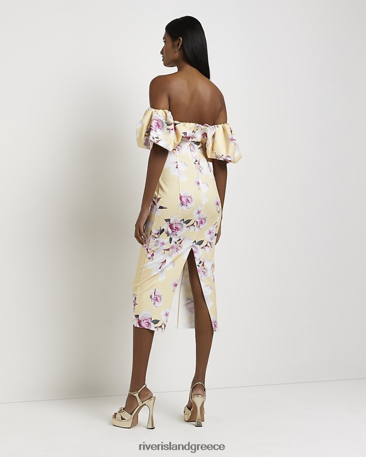 River Island ενδύματα κίτρινος γυναίκες φλοράλ bardot bodycon midi φόρεμα B6N8X452