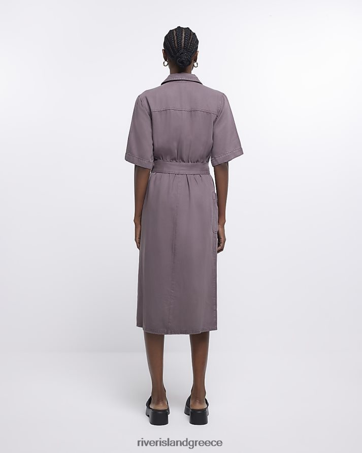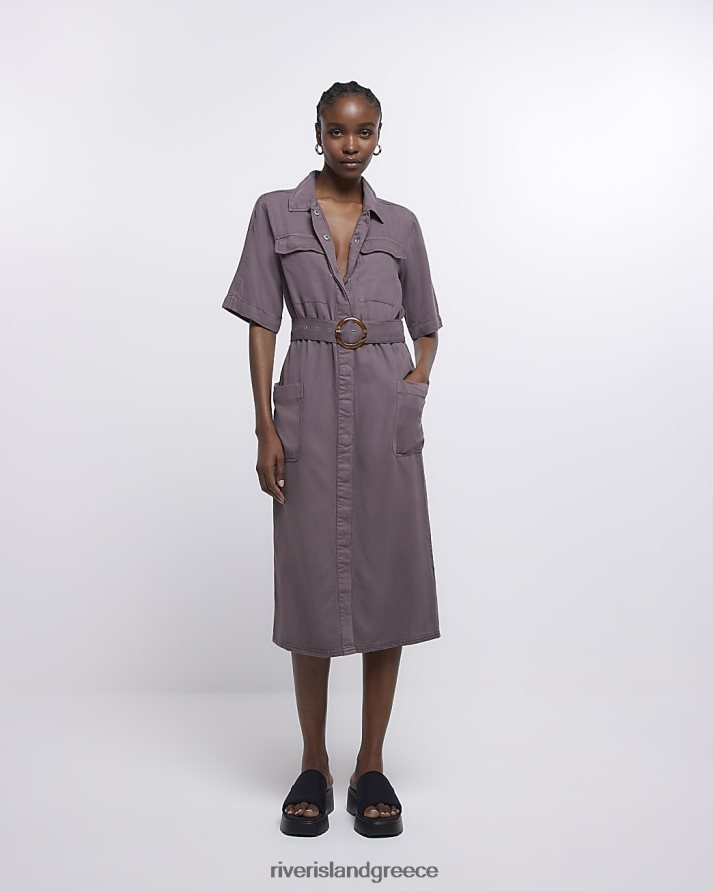 River Island ενδύματα καφέ γυναίκες κοντομάνικο φόρεμα μίντι πουκάμισο με ζώνη B6N8X1760