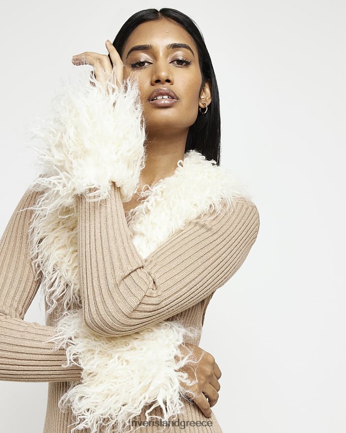 River Island ενδύματα καφέ γυναίκες Μίντι φόρεμα με ζακέτα από ψεύτικη γούνα B6N8X4968