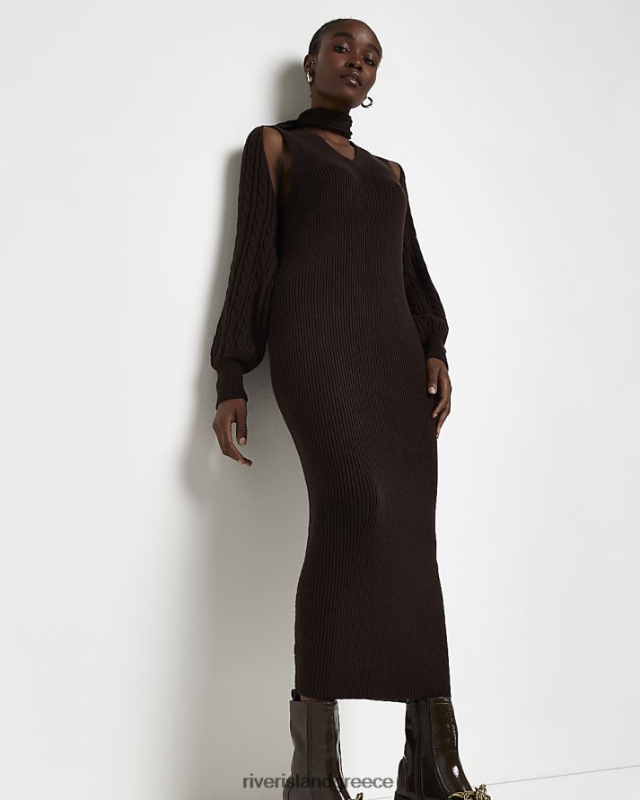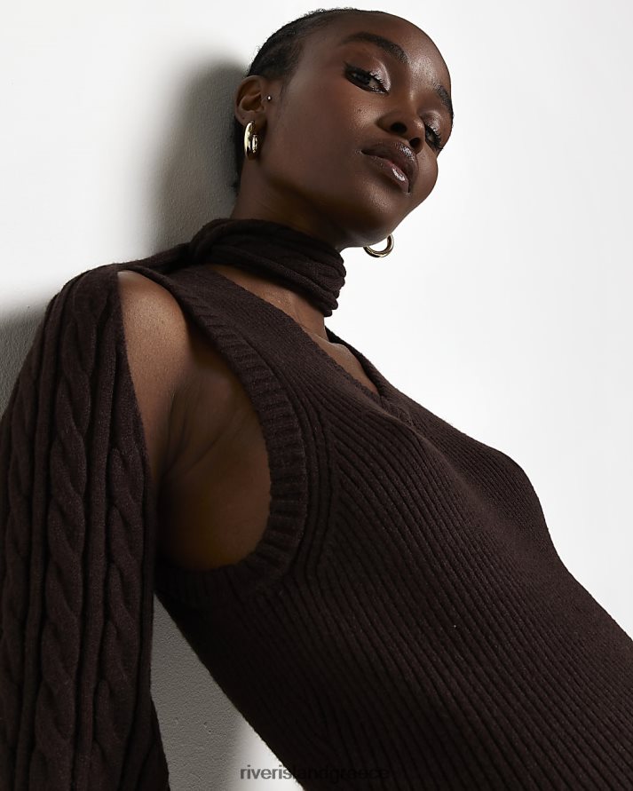 River Island ενδύματα καφέ γυναίκες μίντι φόρεμα με πλεκτό κομμένο σώμα B6N8X4929