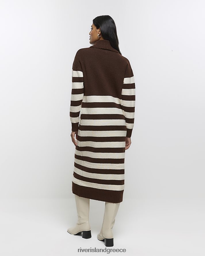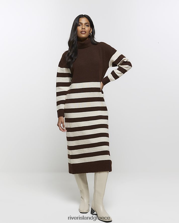 River Island ενδύματα καφέ γυναίκες μίντι φόρεμα ριγέ πουμπερ B6N8X738