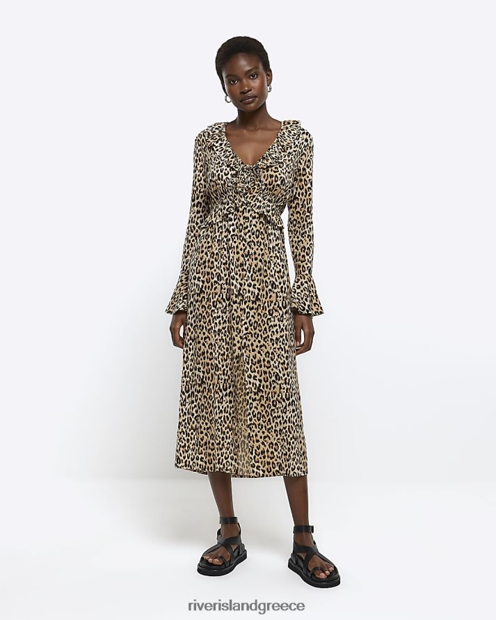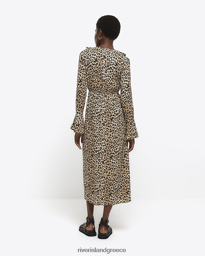 River Island ενδύματα καφέ γυναίκες μίντι φόρεμα τσαγιού animal print B6N8X4425